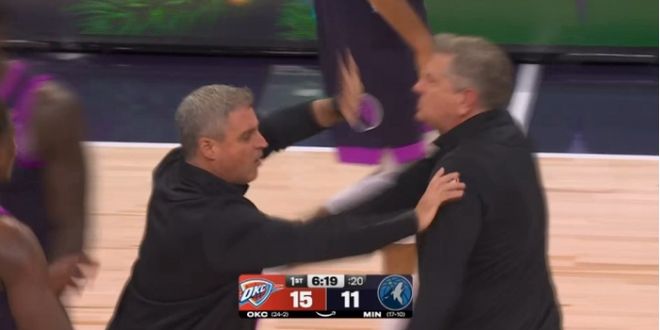 北京時間12月20日,在森林狼主場對陣衛冕冠軍雷霆的首節比賽,森林狼主帥芬奇不滿判罰,沖進場內狂噴裁判,導致連吃兩T被驅逐,森林狼核心愛德華茲也是咨詢裁判表達疑問。